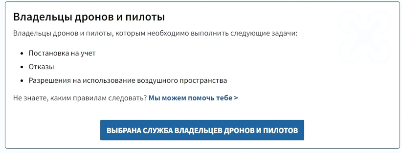 Вы должны будете добавить услугу, чтобы в дальнейшем ей управлять. Например, вы являетесь владельцем и пилота дрона. Выбирайте соответствующий пункт: